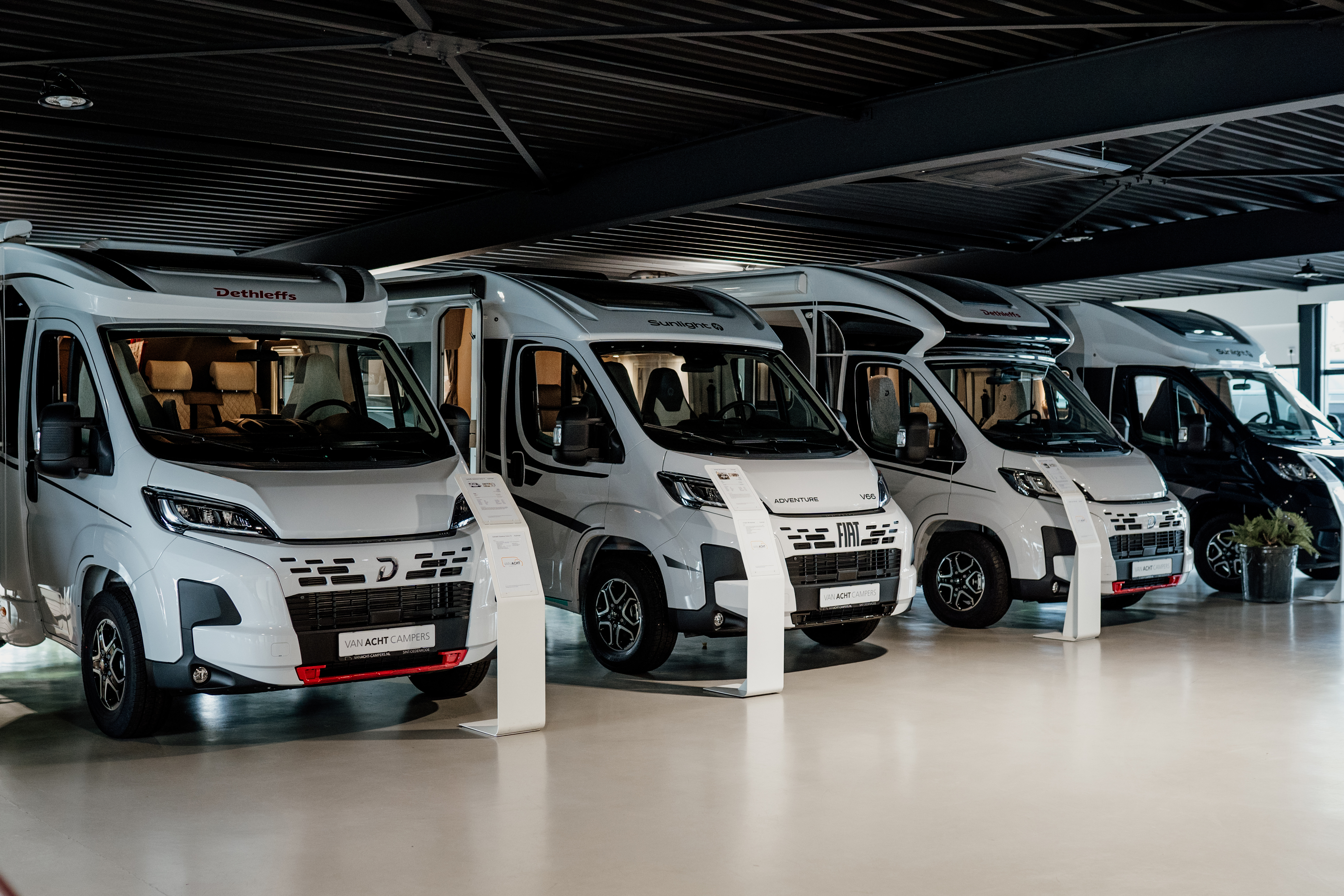 In onze ruime showroom en buiten op ons terrein staan meer dan 80 campers klaar om te bekijken, vergelijken en te ontdekken – van jong gebruikte toppers tot nieuwe modellen van Sunlight en Dethleffs.